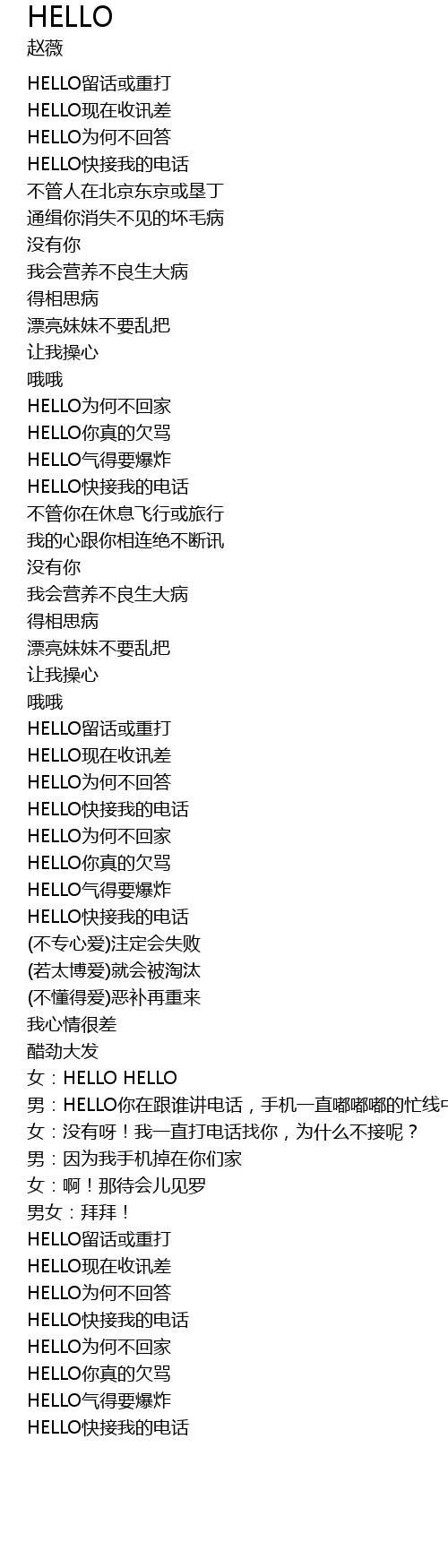 | [03:10.66] | HELLO为何不回答 |