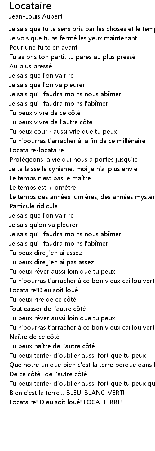 | Locataire! Dieu soit loué! LOCA-TERRE! |