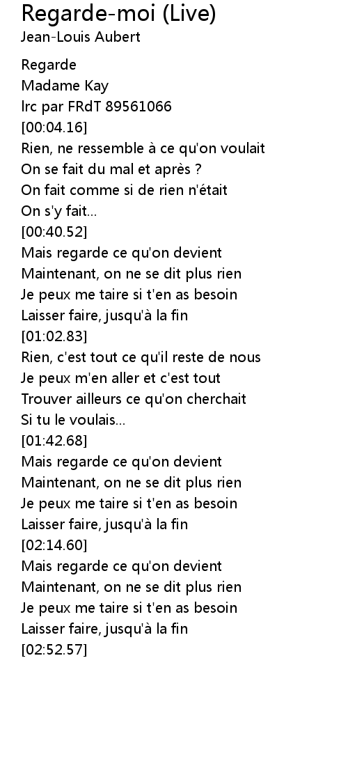 | [00:41.66] | Mais regarde ce qu'on devient |