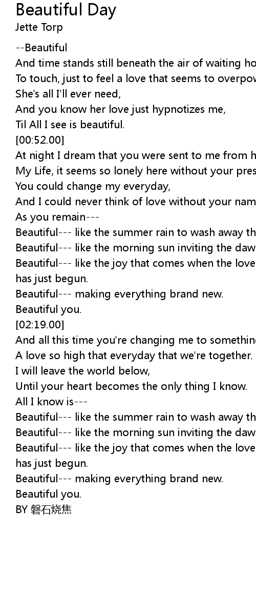 | [01:49.00] | Beautiful--- like the joy that comes when the love you've .longed for has just begun. |