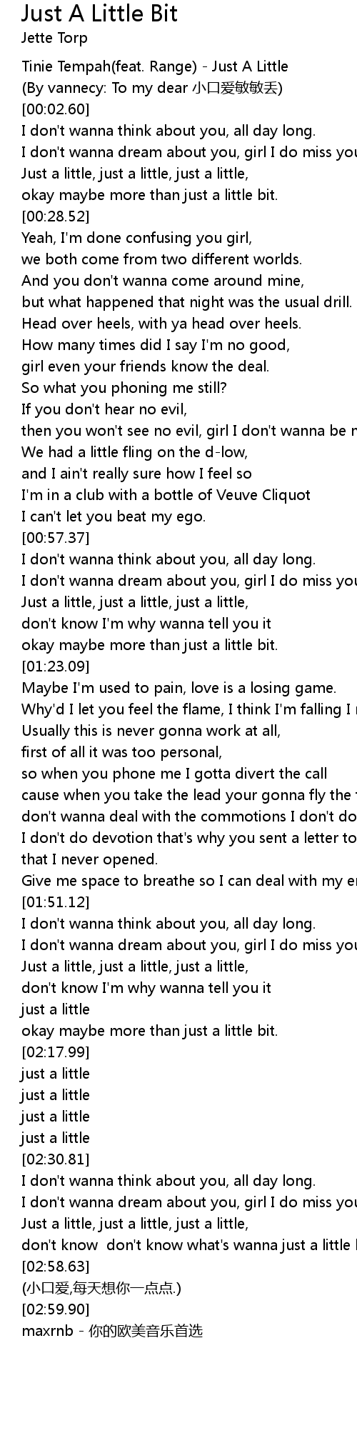 | [02:55.52] | don't know don't know what's wanna just a little bit |