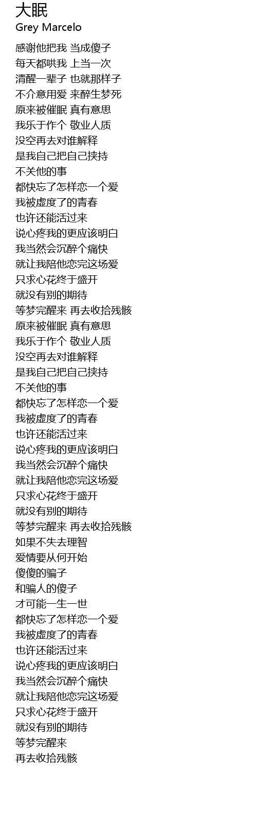 | 歌曲 | 大眠 |
