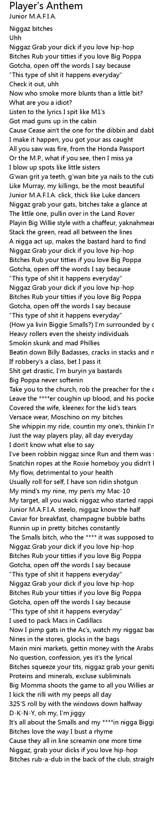 Bitches squeeze your tits, niggaz grab your genitals |