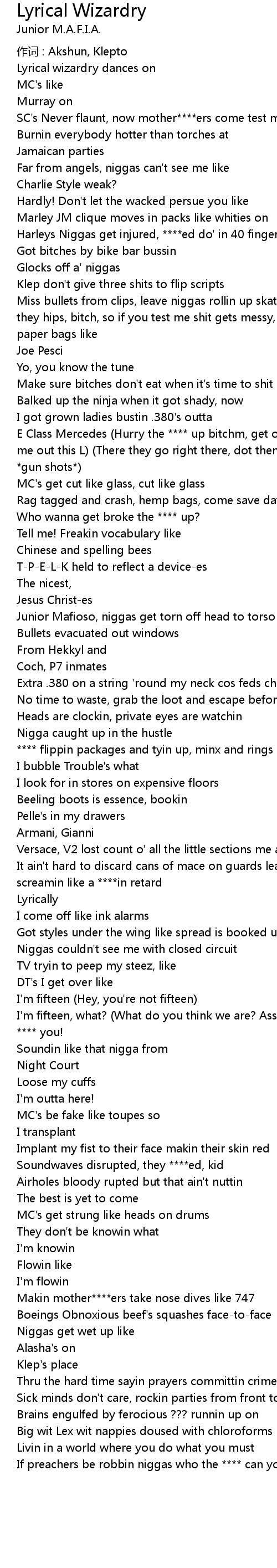 | 歌曲 | Lyrical Wizardry |