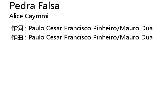 | [00:00.000] | 作曲 : Paulo Cesar Francisco Pinheiro/Mauro Duarte De Oliveira |