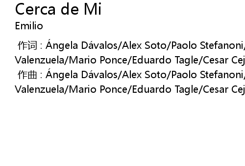 | [00:00.000] | 作词 : Ángela Dávalos/Alex Soto/Paolo Stefanoni/Katia Valenzuela/Mario Ponce/Eduardo Tagle/Cesar Ceja |