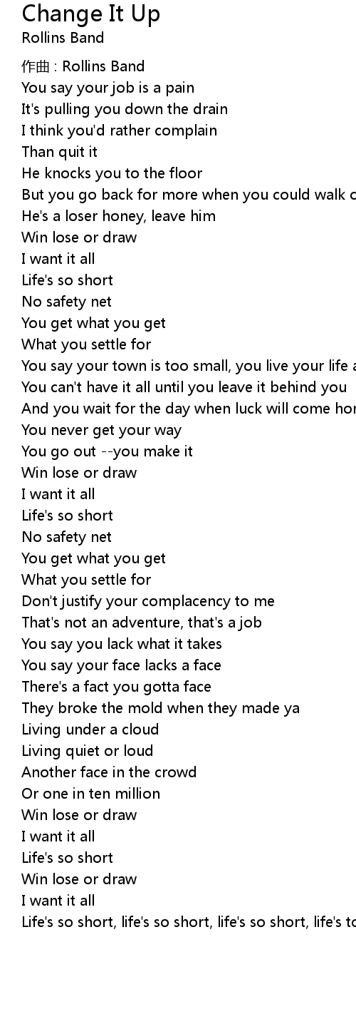 | Life' s so short, life' s so short, life' s so short, life' s to short man |