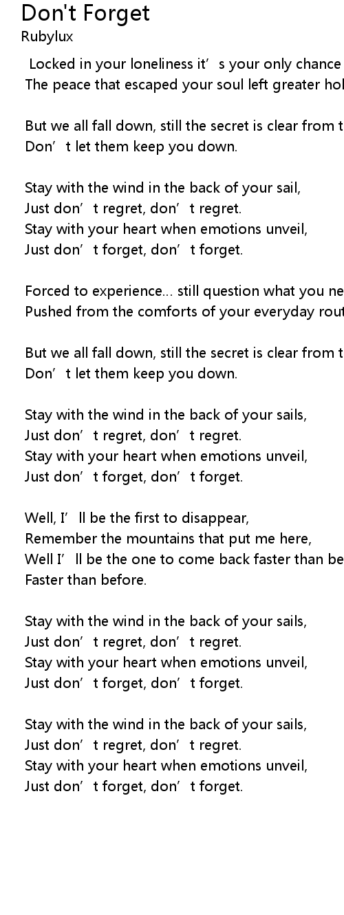 | Just don' t forget, don' t forget. |