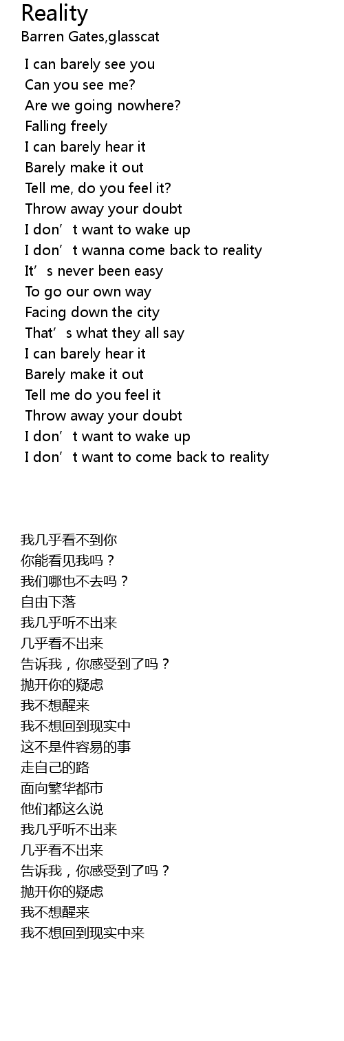 | [00:43.415] | I don' t wanna come back to reality |