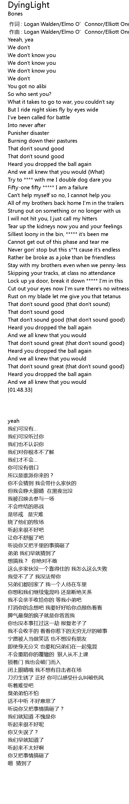 | [01:03.23] | Never gon' stop but this s**t cause it's endless |