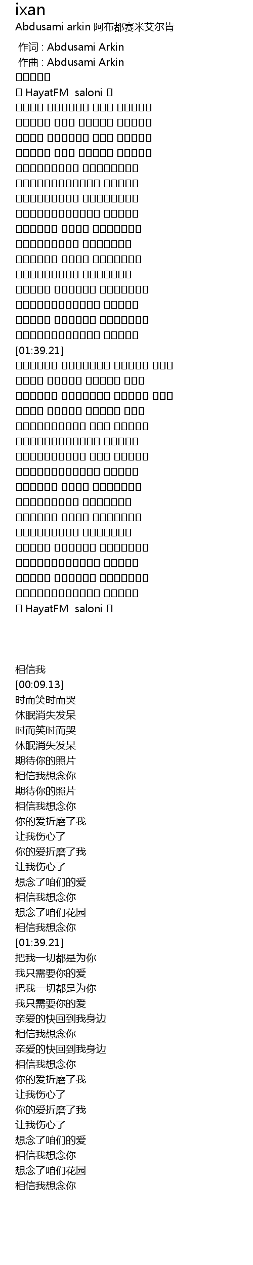 作词 : Abdusami Arkin |