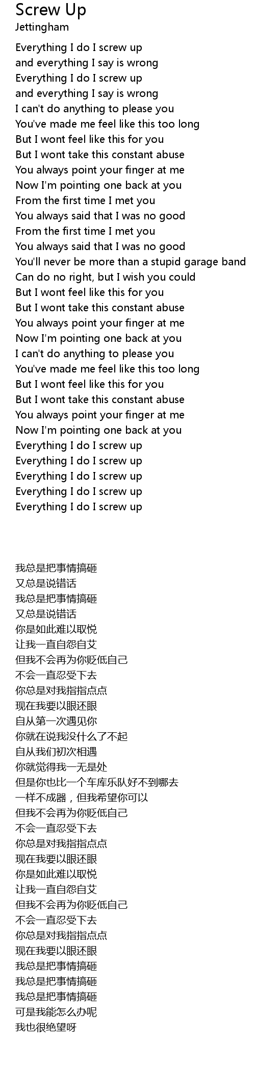 Everything I do I screw up |