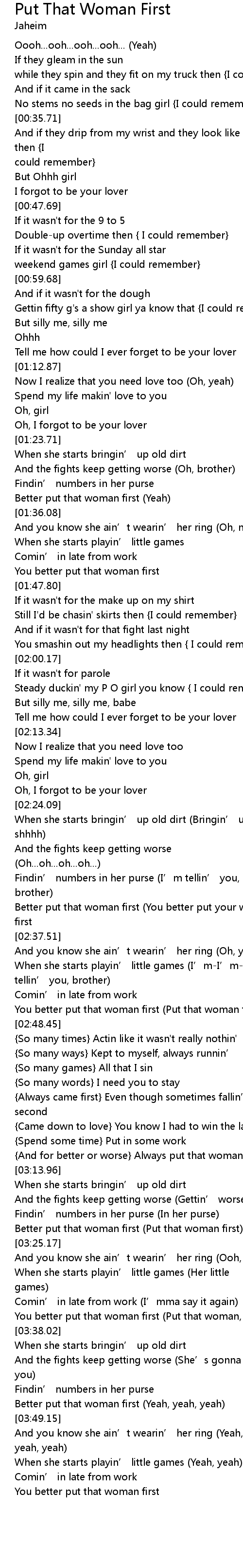 | [03:58.61] | You better put that woman first |
