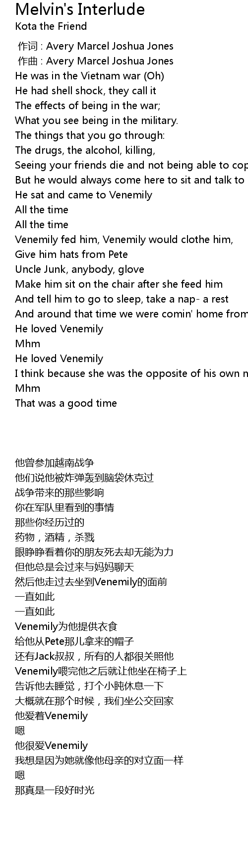 | [00:00.000] | zuo ci : Avery Marcel Joshua Jones |