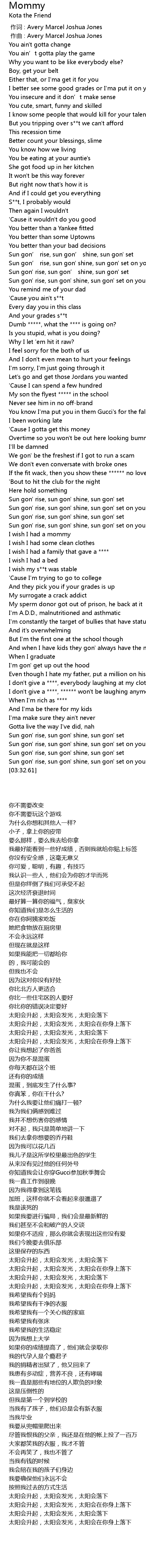 | [00:00.000] | zuo ci : Avery Marcel Joshua Jones |