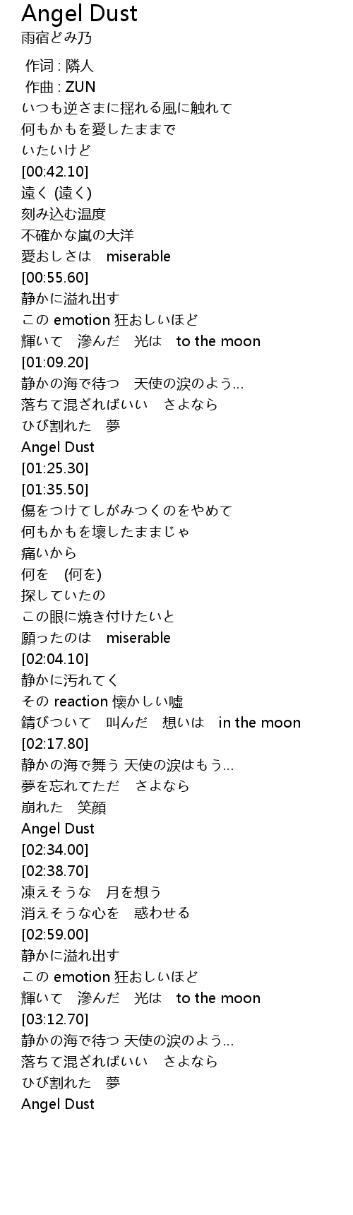| [02:17.90] | 静かの海で舞う 天使の涙はもう… |