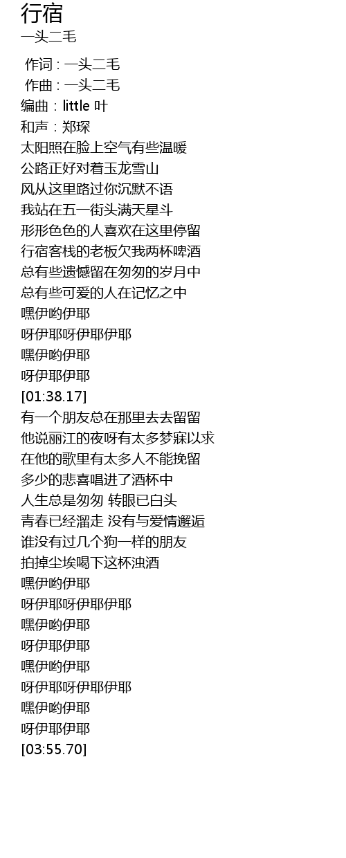 | [00:50.92] | 行宿客栈的老板欠我两杯啤酒 |