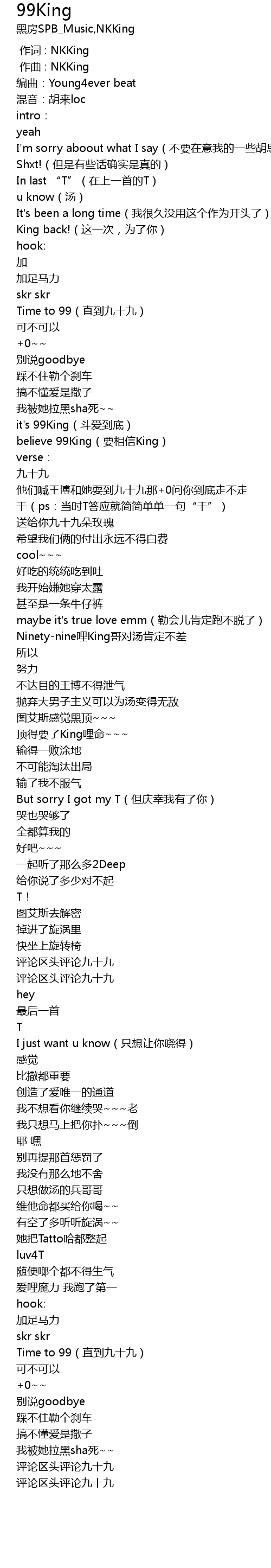 | [00:58.469] | Ninety-nine哩King哥对汤肯定不差 |