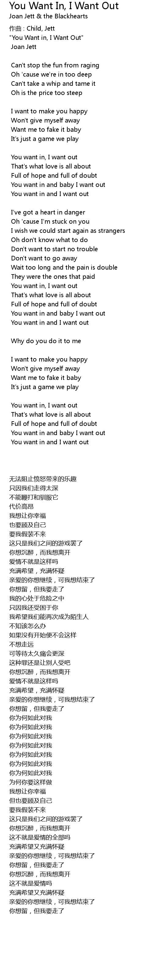 | You want in and baby I want out | |