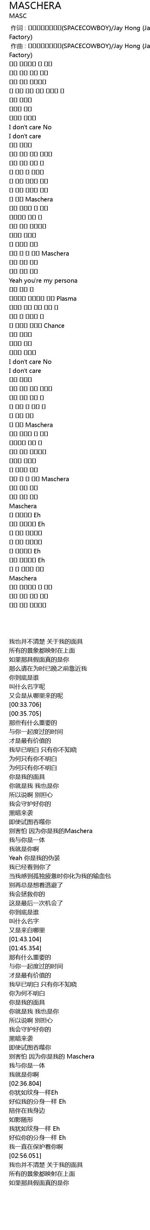 | [01:05.666] | 걱정 마 넌 나의 Maschera |
