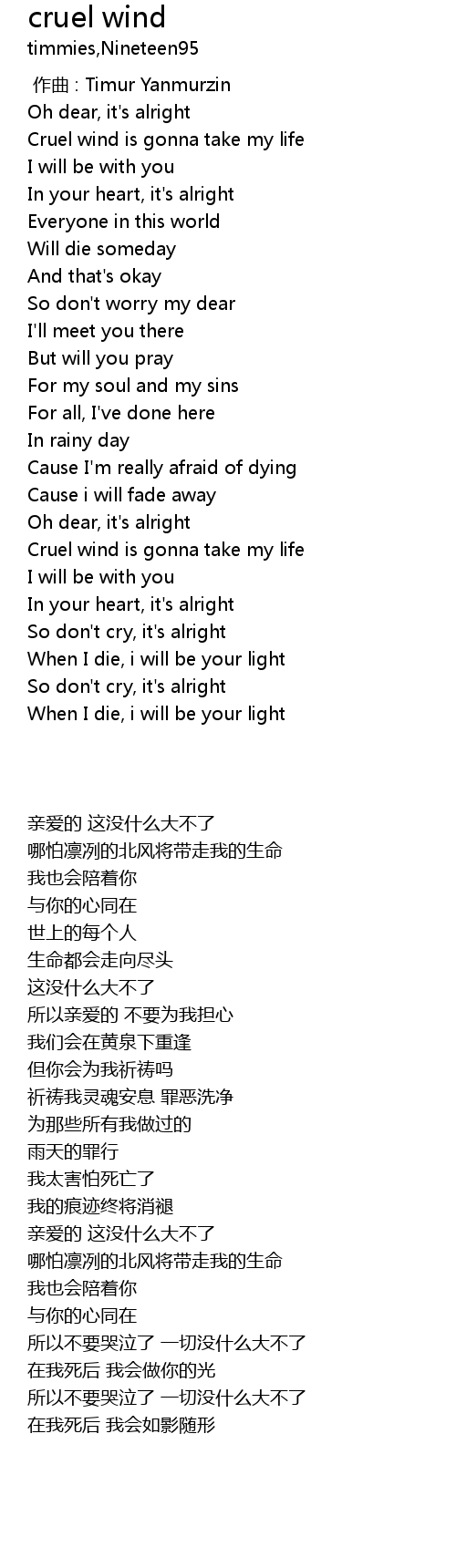 | [00:36.22] | Cruel wind is gonna take my life |