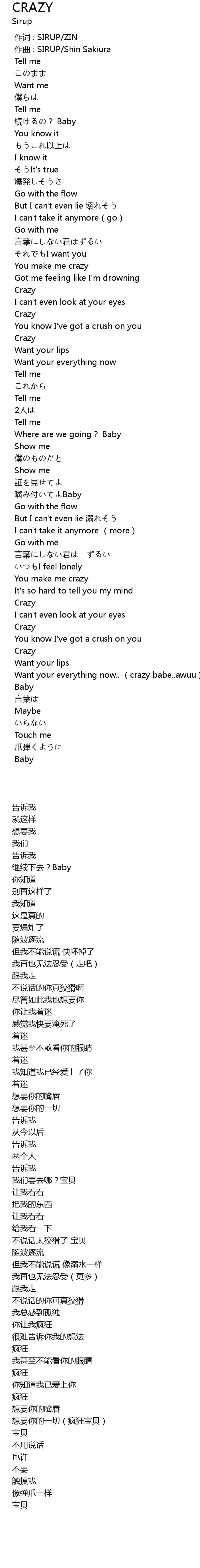 | [00:00.000] | zuò cí : SIRUP ZIN |