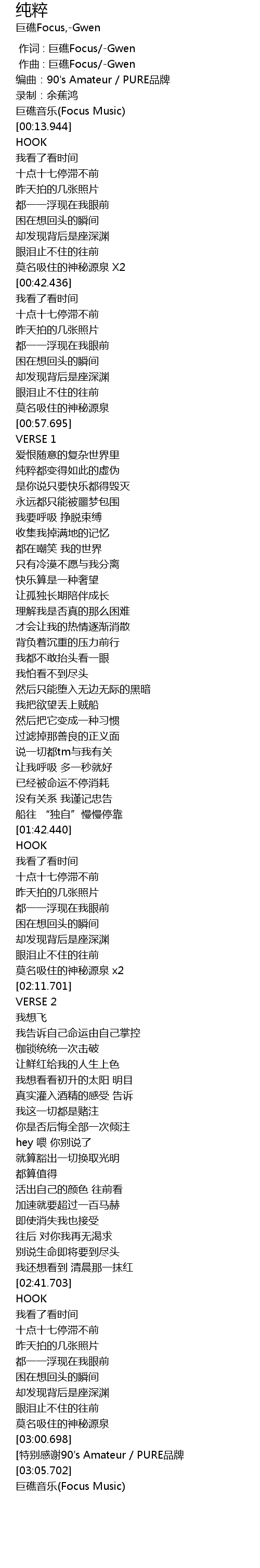 | [00:01.439] | 编曲:90's Amateur / PURE品牌 |