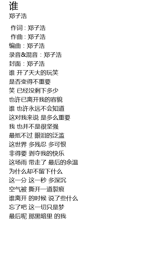 | [00:01.976] | 编曲:郑子浩 |