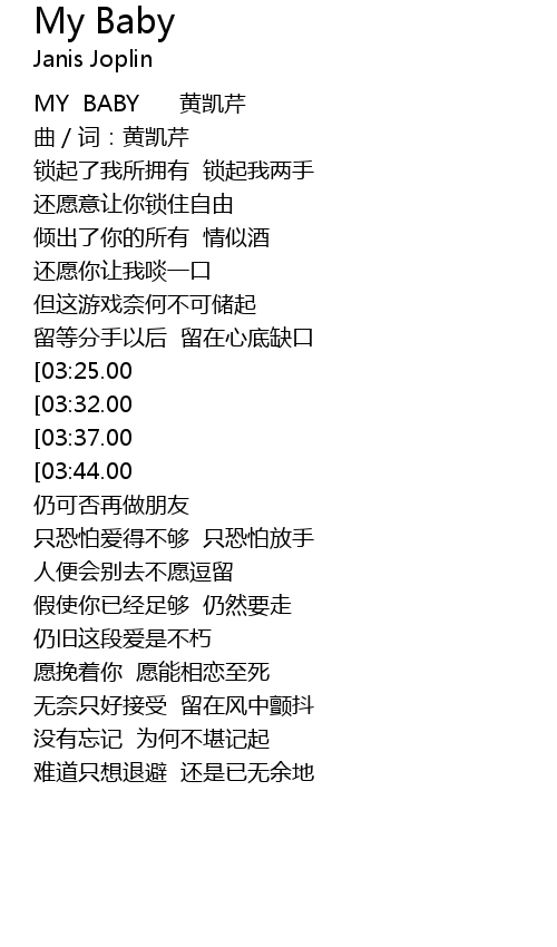 | [00:00.00] | MY BABY 黄凯芹 |