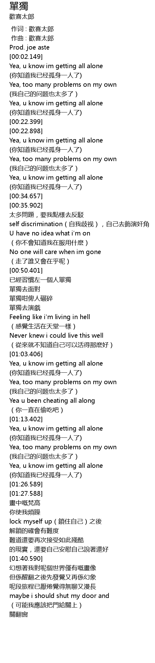 | [00:26.147] | Yea, u know im getting all alone |