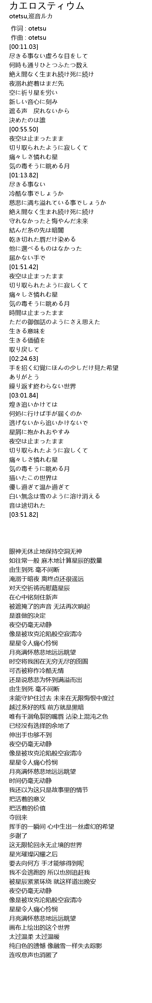 | [00:00.000] | 作词 : otetsu |