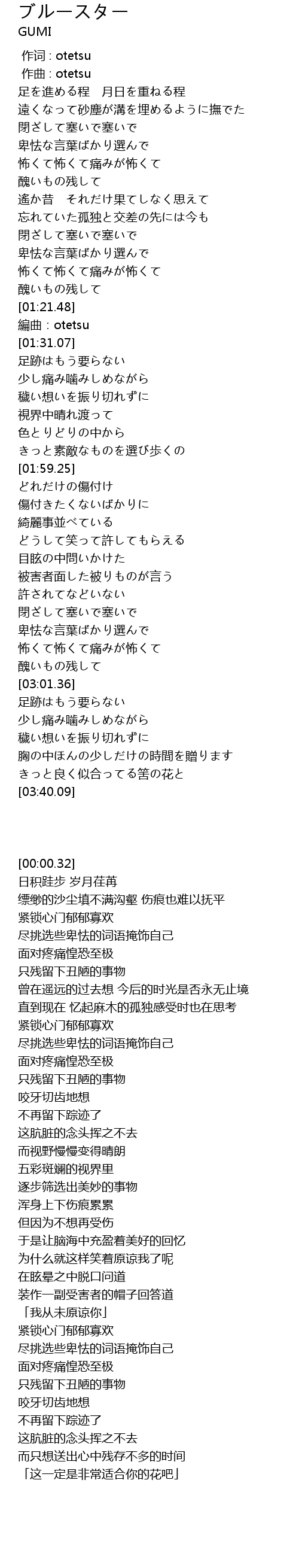 | [00:00.32] | bian qu: otetsu |