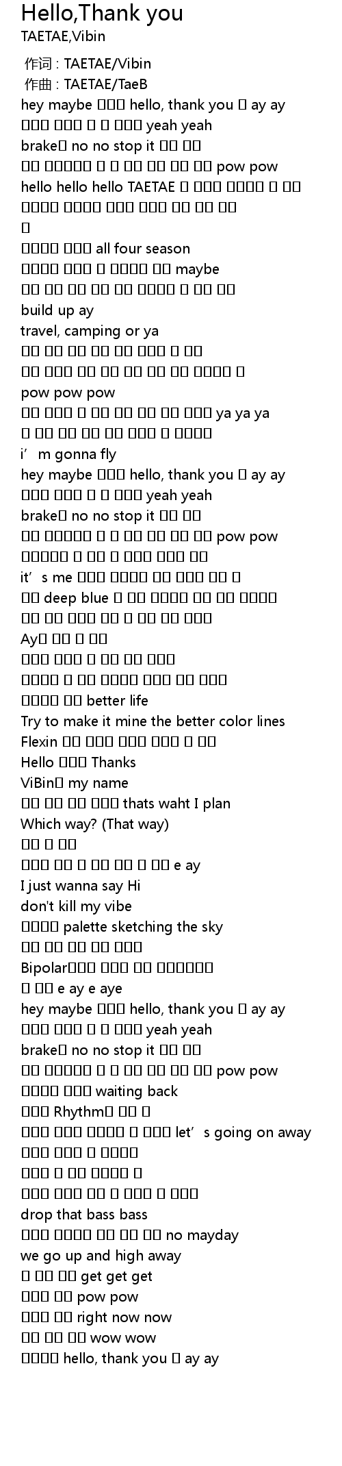 | [02:05.018] | hey maybe 일단은 hello, thank you 해 ay ay |