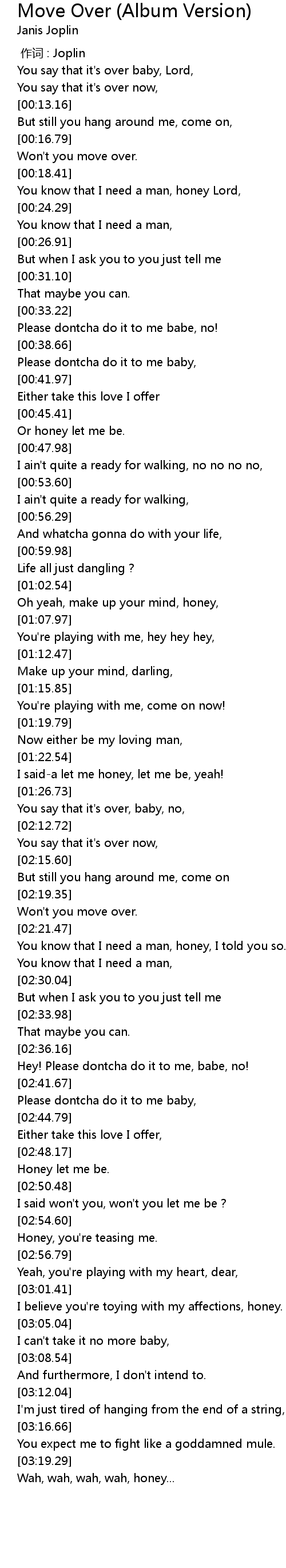 | [00:07.85] | You say that it' s over baby, Lord, |
