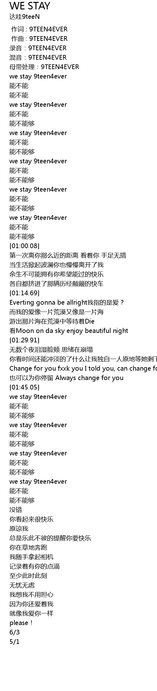 | [01:46.70] | we stay 9teen4ever |