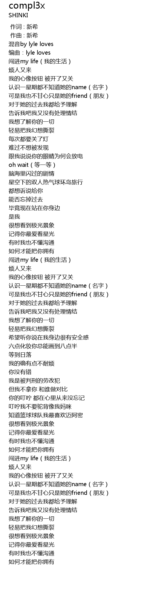 | [02:41.320] | 认识一星期都不知道她的name(名字) |