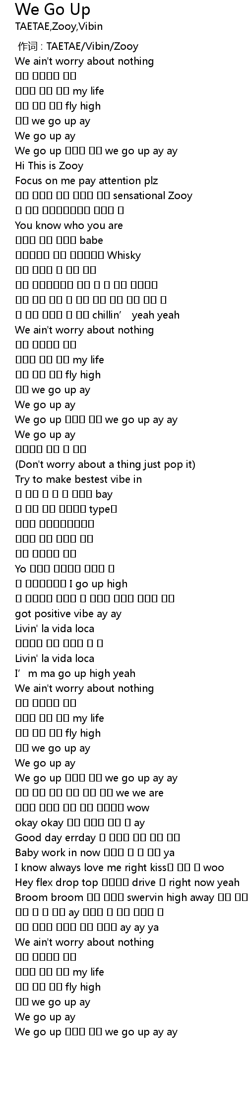 | [03:01.518] | We go up 매일이 우린 we go up ay ay |