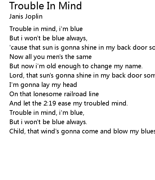 | Trouble in mind, i'm blue | |