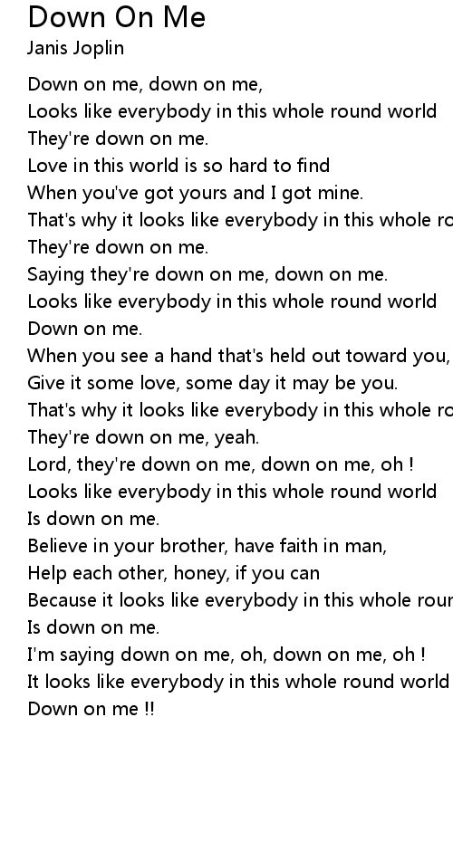 I'm saying down on me, oh, down on me, oh ! |