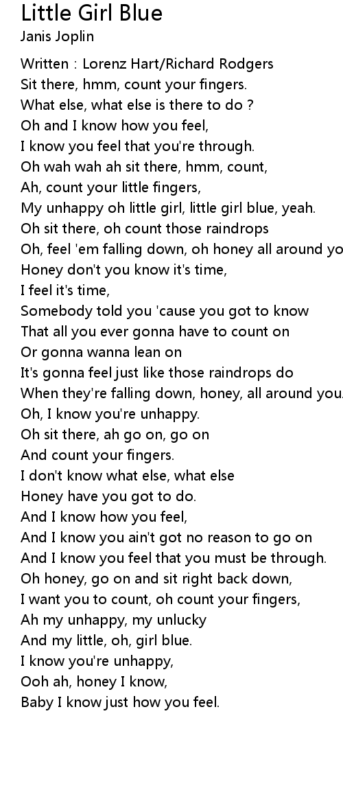 | My unhappy oh little girl, little girl blue, yeah. | |