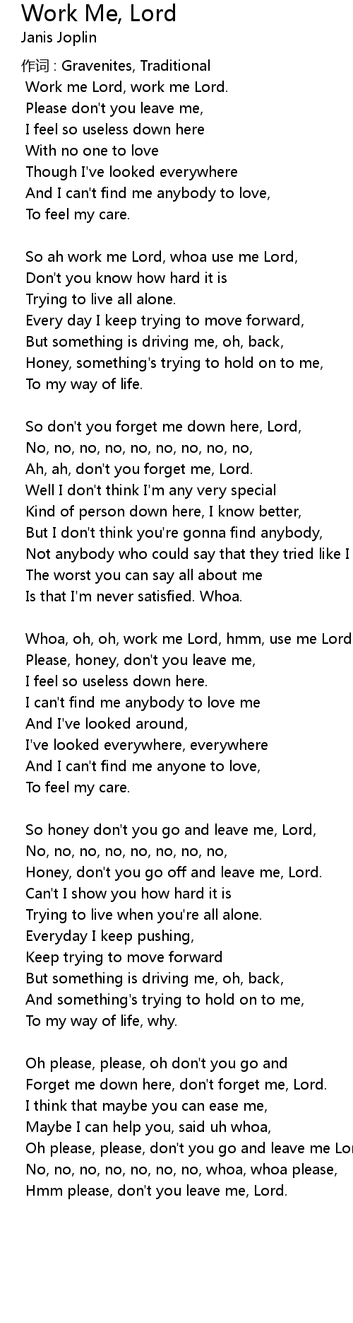 | 歌曲 | Work Me, Lord |
