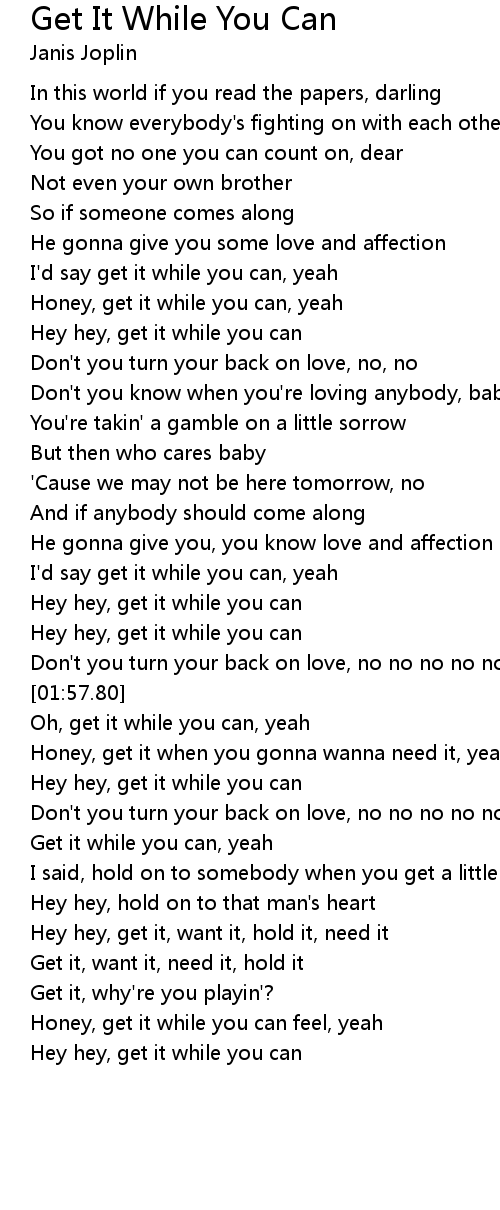 Oh, get it while you can, yeah |