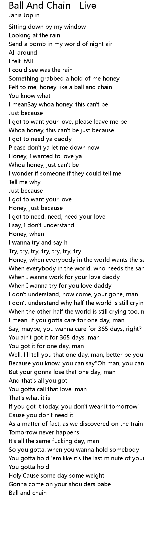 Felt to me, honey like a ball and chain |