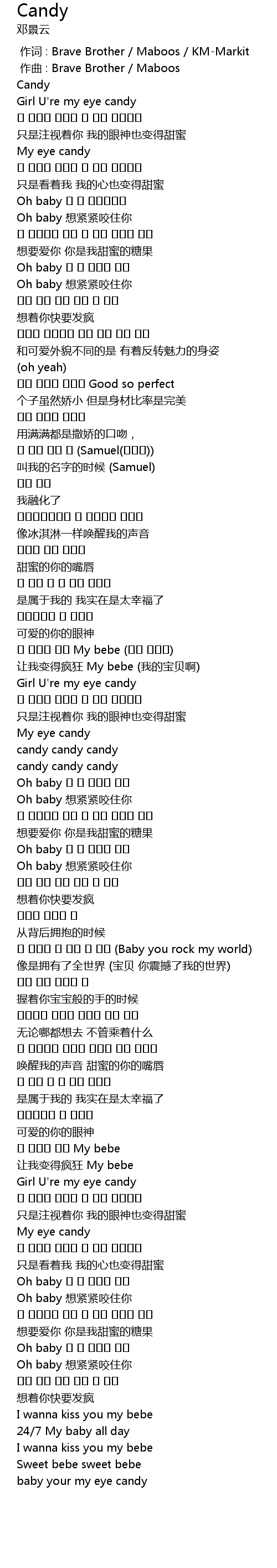 | [00:16.032] | Girl U' re my eye candy |