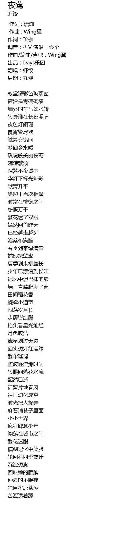 | [00:12.87] | 作曲/编曲/吉他:Wing翼 |