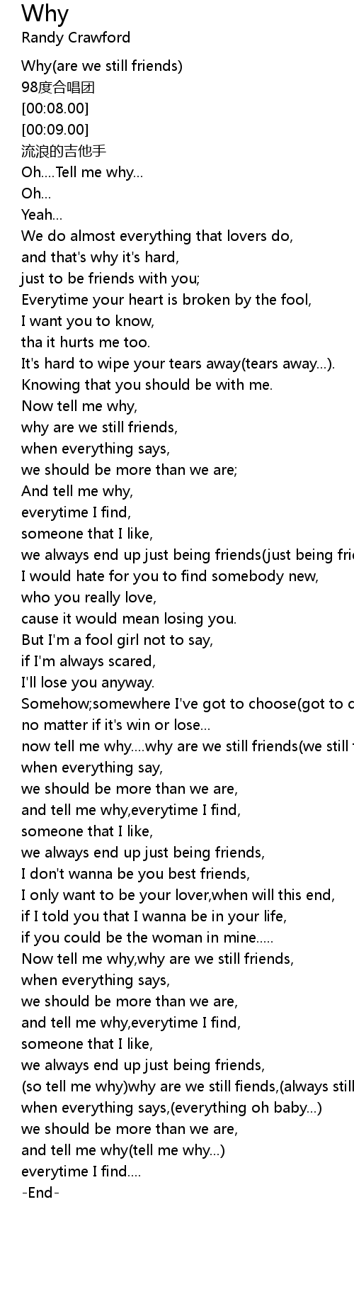 | [00:01.00] | Why are we still friends |