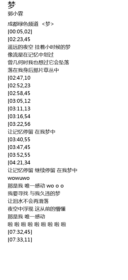 | [01:19,06][02:52,23] | 每一个梦都像流星划过 |