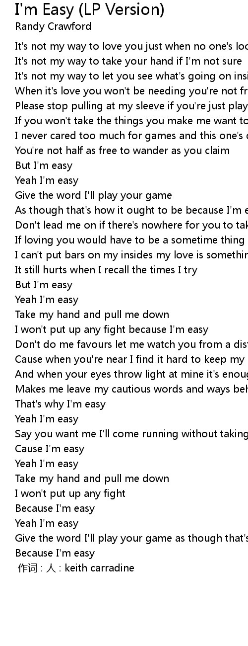 | 歌曲 | I'm Easy (LP Version) |