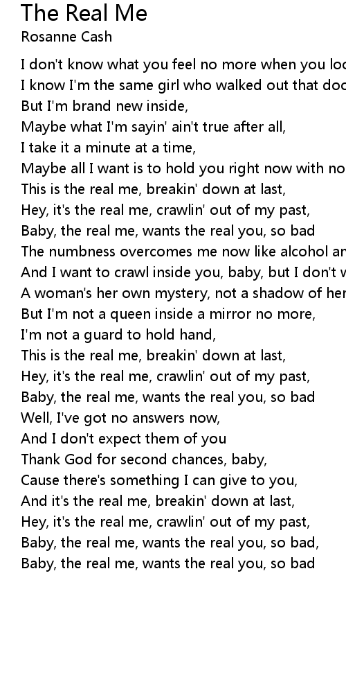 This is the real me, breakin' down at last, |
