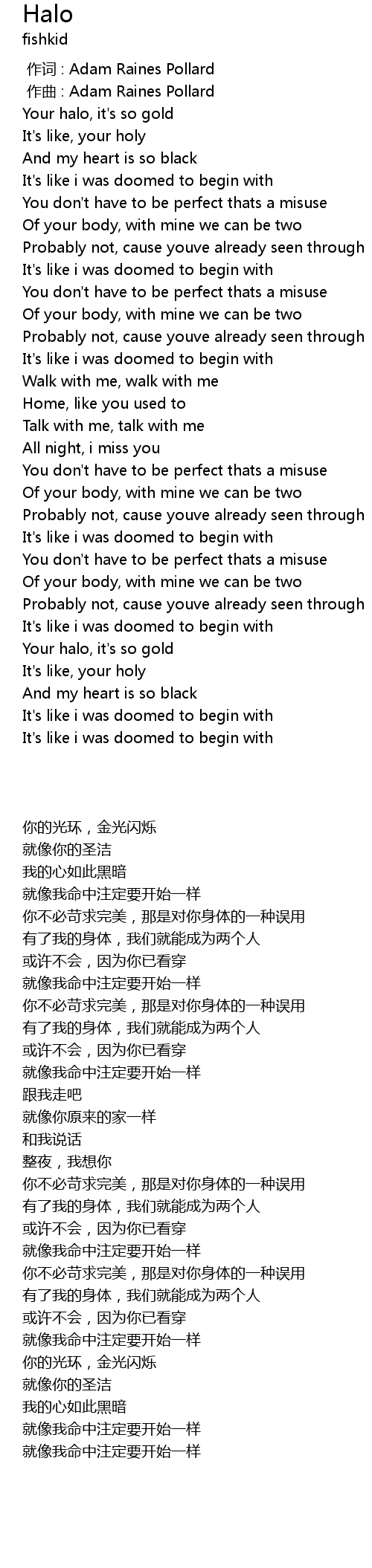 | [01:32.43] | Your halo, it's so gold |